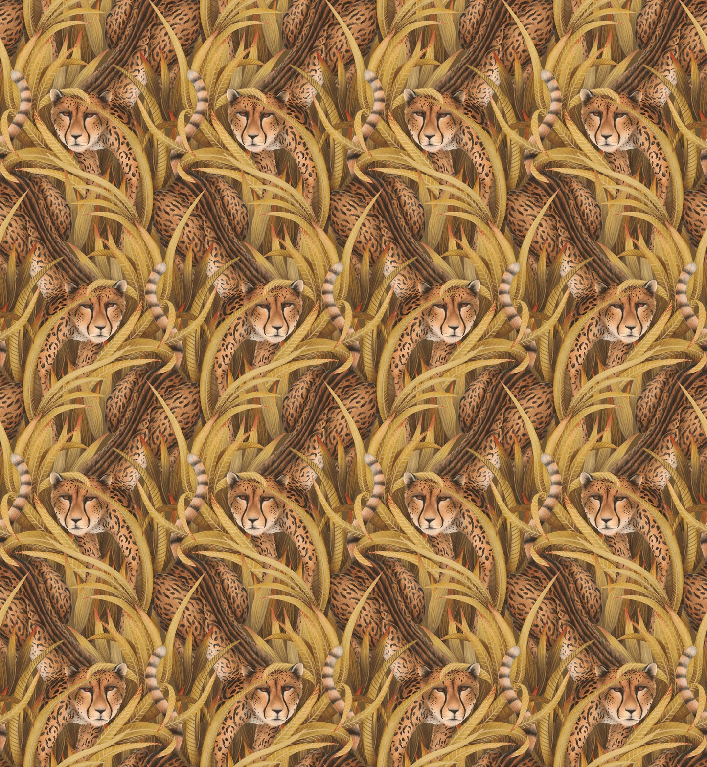 Á Cheetah Prowl mynstrinu sést skrúðganga af konunglegum blettatígrum með sínar einkennandi þrjár rendur á bakinu feta sig áfram í fjaðrakenndu grasinu. Hinn viðsjáli blettatígur er hraðskreiðasta dýr í heimi en einnig eitt sjaldgæfasta og er bæði goðsagnakenndur og heillandi.