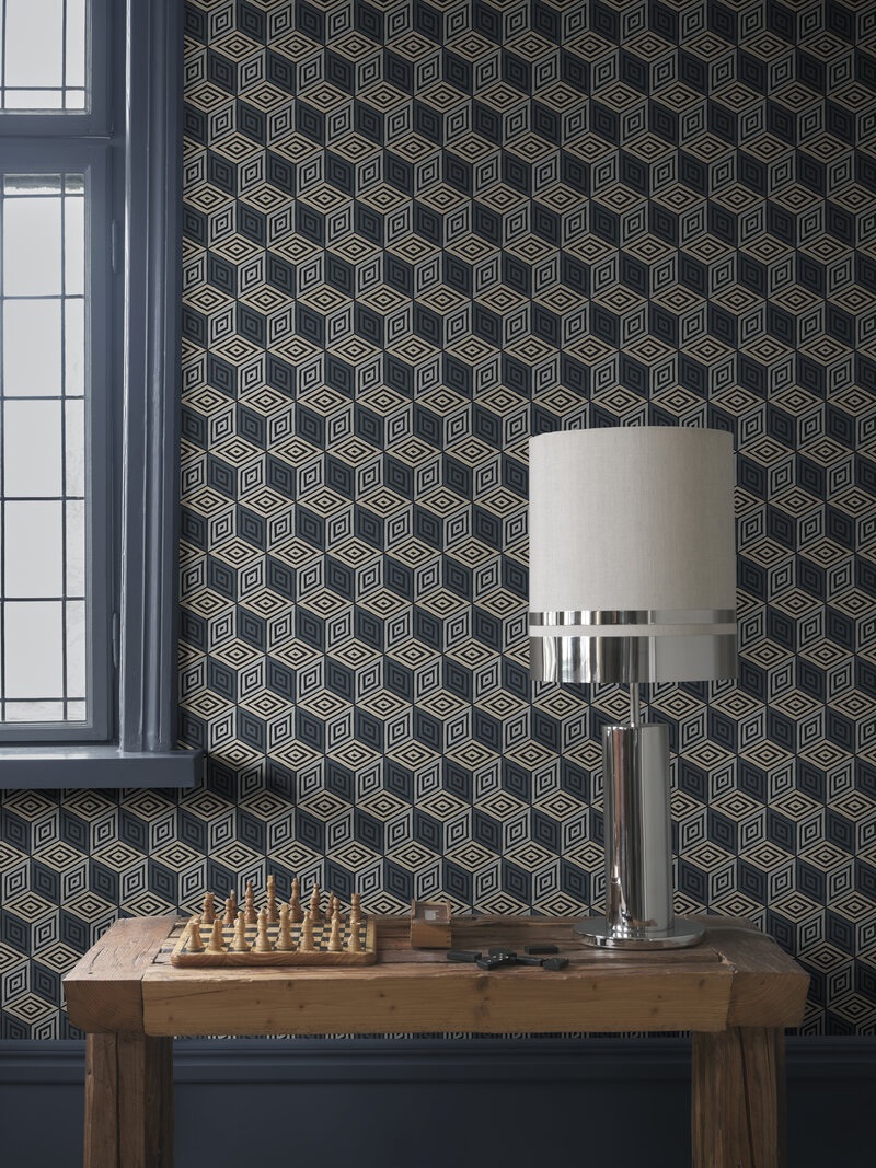Chiara er heillandi geómetrískt mynstur sem minnir á glæsilegt silki. Þetta smágerða veggfóður geislar af alþjóðlegum blæ með sínum kraftmiklu teningum og ríkulegu litapallettu. Fullkomið til að skapa nútímalegt og fágað andrúmsloft. Hönnun: Sara Bergqvist.