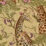 Royal Giraffe er hrífandi myndverk um móðurást. Hún fangar fljótandi augnablikið milli tveggja konunglegra gíraffa þegar kálfurinn snýr sér upp að móður sinni. Kyrrð ríkir innan um akasíulaufin og baunabelgina milli þessara tignarlegu, turnháu vera. Handmáluð smáatriðin og einstök litapalletta prýðir allar útgáfur þessa einstaka veggfóðurs. Auk þess er Royal Giraffe, Gilded með málmgylltum bakgrunni og aðeins upphleypri áferð.