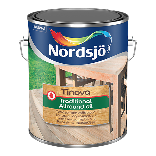 Tinova Traditional Allround Oil er pallaolía sem hefur einstaka eiginleika til að smjúga vel inn í viðinn. Olían inniheldur vatnsfráhrindandi efni og hindrar þannig rakaupptöku, minnkar sprungumyndun og viðheldur náttúrulegu útliti viðarins. Tinova Traditional Allround Oil er ætluð til notkunar á mismunandi tegundir viðar utanhúss, s.s. furu, greni, sedrus, lerki og harðvið. Hún fæst glær og í mörgum litum.